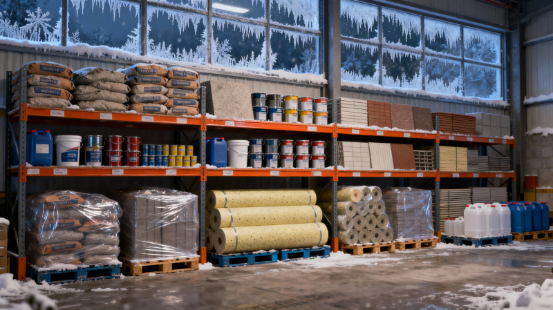 Зима — непростое время для хранения строительных, отделочных и прочих материалов, используемых при ремонте и обустройстве дома, дачи или коммерческих объектов. Резкое понижение температуры, повышенная влажность, перепады температуры между днем и ночью, а также риск замерзания или отсыревания способны испортить даже самые качественные материалы. Как защитить свой закупленный запас и не потерять деньги? Расскажем о трех ключевых правилах зимнего хранения, которые помогут вам сохранить характеристики товаров до весны — будь это плитка, напольные покрытия, краска, клей, сухие смеси или даже инструменты.