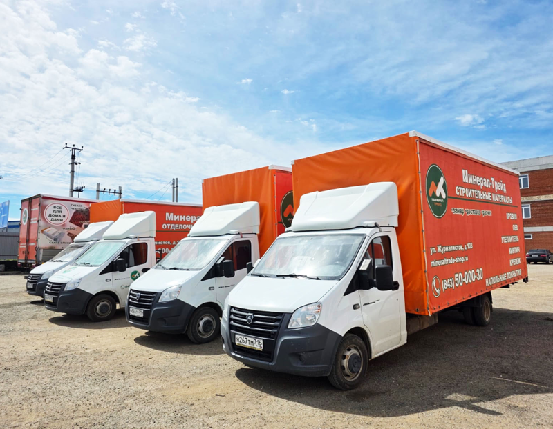 Компания «МИНЕРАЛ-ТРЕЙД» предлагает собственные транспортные услуги по доставке наплавляемых кровельных, гидроизоляционных и теплоизоляционных материалов по Казани и ближайшим пригородным районам.