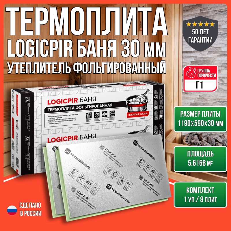 Обладая теплосберегающими свойствами и фольгированной обкладкой, LOGICPIR Баня не только отражает тепло, но и не пропускает пар. Благодаря этому баня быстро нагревается и на долго сохраняет необходимый температурный режим. LOGICPIR Баня абсолютно безвреден для здоровья человека на протяжении всего срока службы, который составляет более 50 лет.