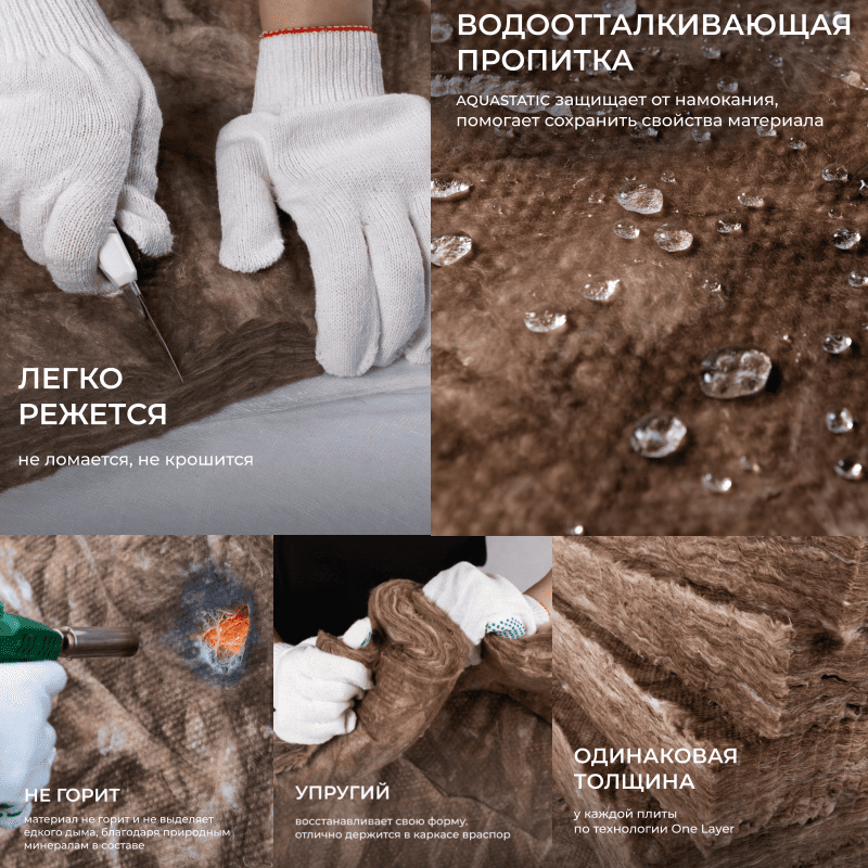 Благодаря способу производства в один слой - mono layer, который сохраняет целостность мата, и уникальной новой технологии производства супер упругого волокна Fine Fiber, а также увеличенному на 33%* количеству волокон, новый материал обладает рядом уникальных преимуществ, которые ставят его на самую высокую ступень по сравнению с обычными утеплителями массового сегмента.
