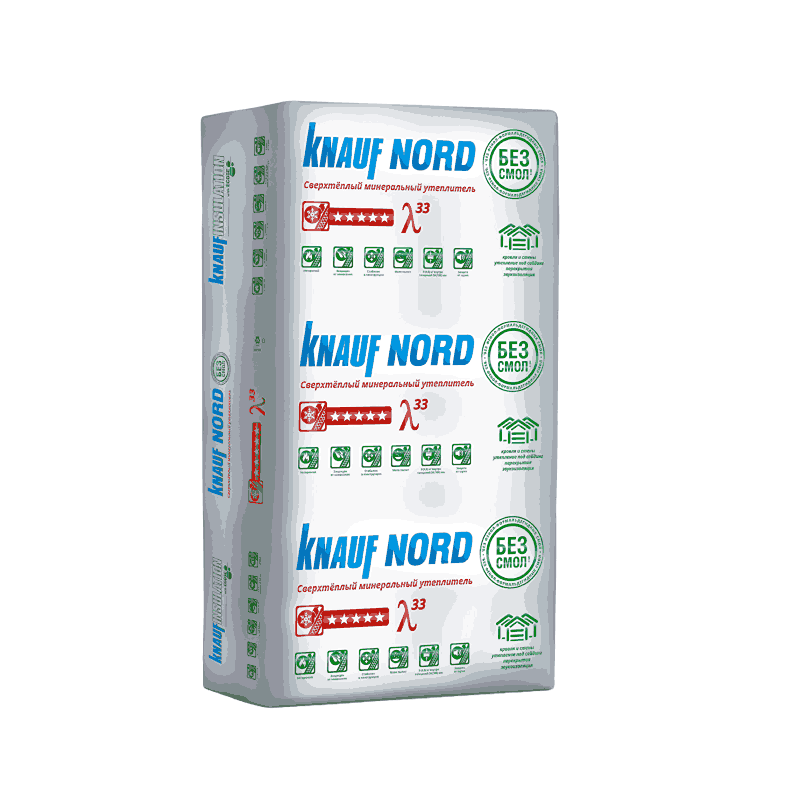 NORD – твёрд! Жесткость и упругость этого материала повышена на 40 %, что на треть увеличивает скорость монтажа и экономит трудозатраты, а также обеспечивает устойчивость утеплителя в конструкции на срок более 50 лет.