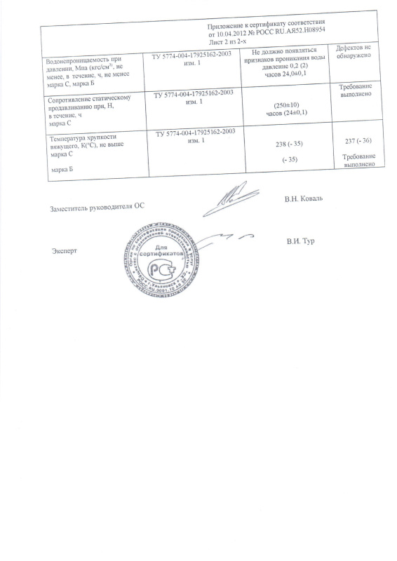 Температура гибкости на брусе R=25 мм: не выше -45 °C