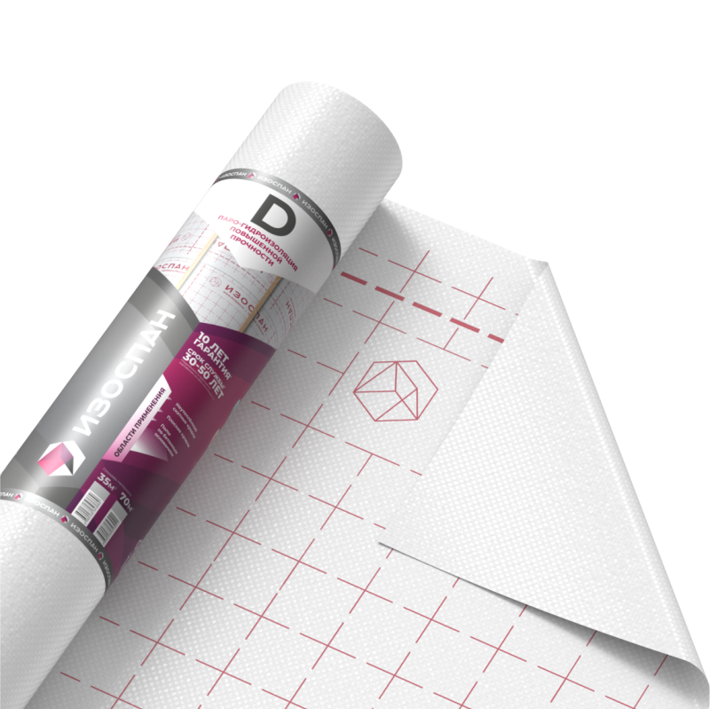Высокое сопротивление проникновению водяного пара, что защищает утеплитель от влаги.
