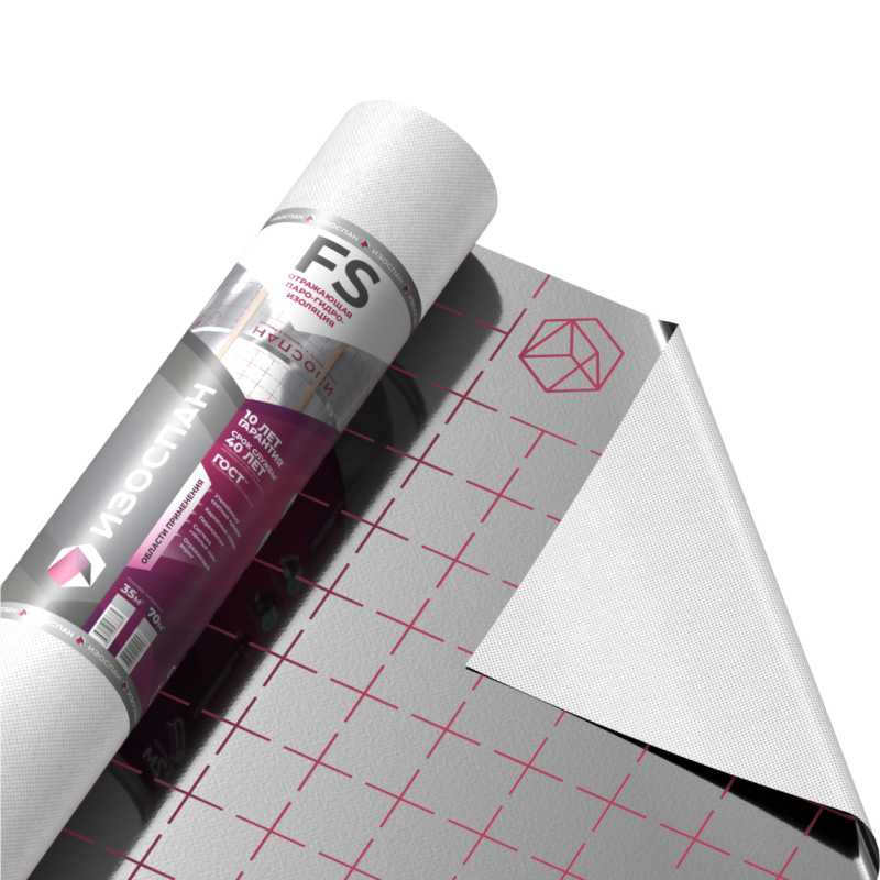 Пароизоляция с энергосберегающим эффектом для защиты утеплителя и конструктивных элементов от проникновения водяных паров изнутри помещения, а также от частиц волокнистого утеплителя. Применяется в утеплённых скатных кровлях, каркасных стенах и перекрытиях.
