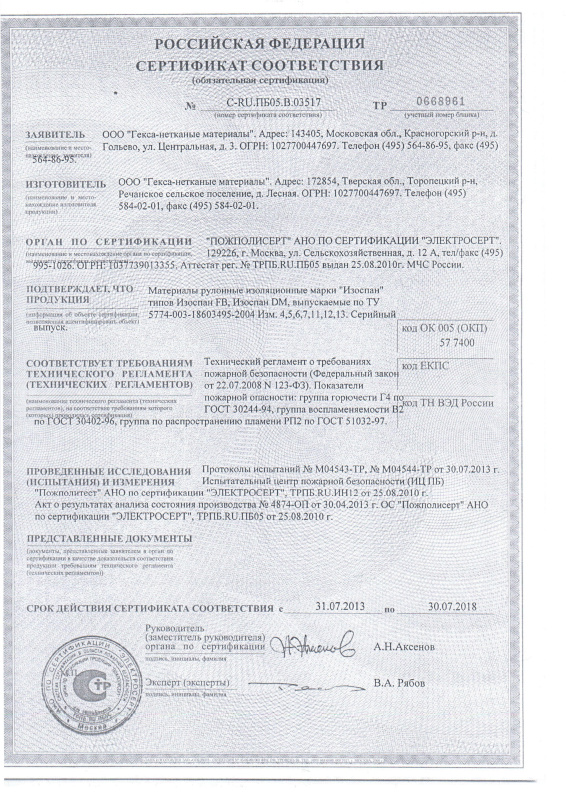 Масса на единицу площади (ГОСТ EN 1849-2-2011): 105 (±5%) г/м²