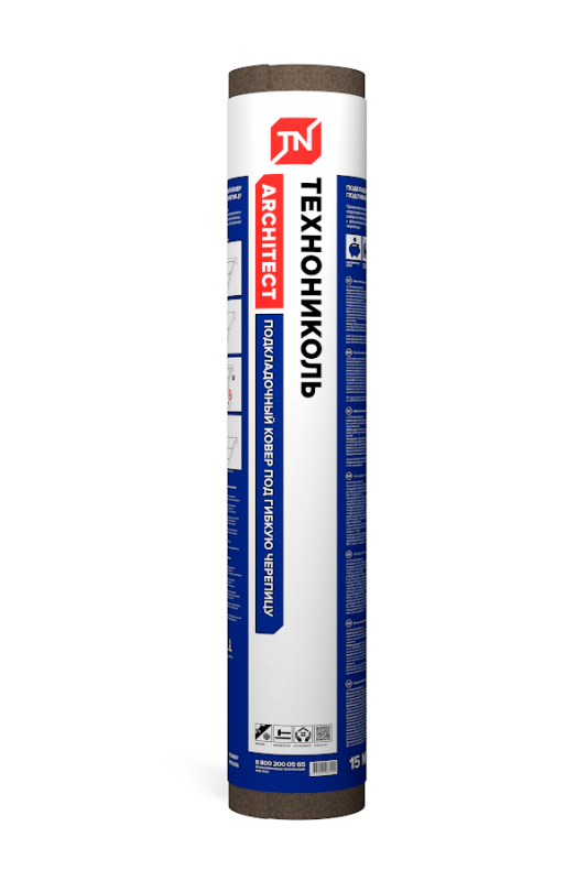 Применяется в качестве подкладочного гидроизоляционного ковра в конструкциях скатных крыш с финишным покрытием из битумной черепицы.