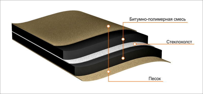 Подкладочный ковер под Гибкую Черепицу получают путем пропитки армирующей основы (стеклохолст) битумным вяжущим, с последующим нанесением на обе поверхности вяжущего защитных слоев. В качестве защитных слоев применяют мелкозернистый песок.