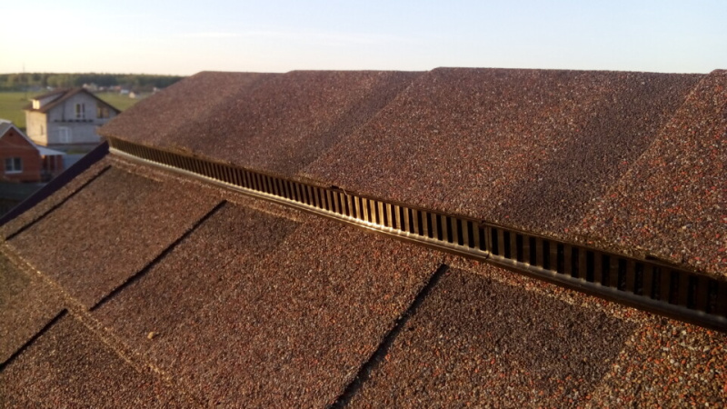 Назначение: Подложка под коньково-карнизную черепицу для удаления влаги из подкровельного пространства. Оснащен полиуретановым фильтром для защиты от атмосферных осадков и насекомых.