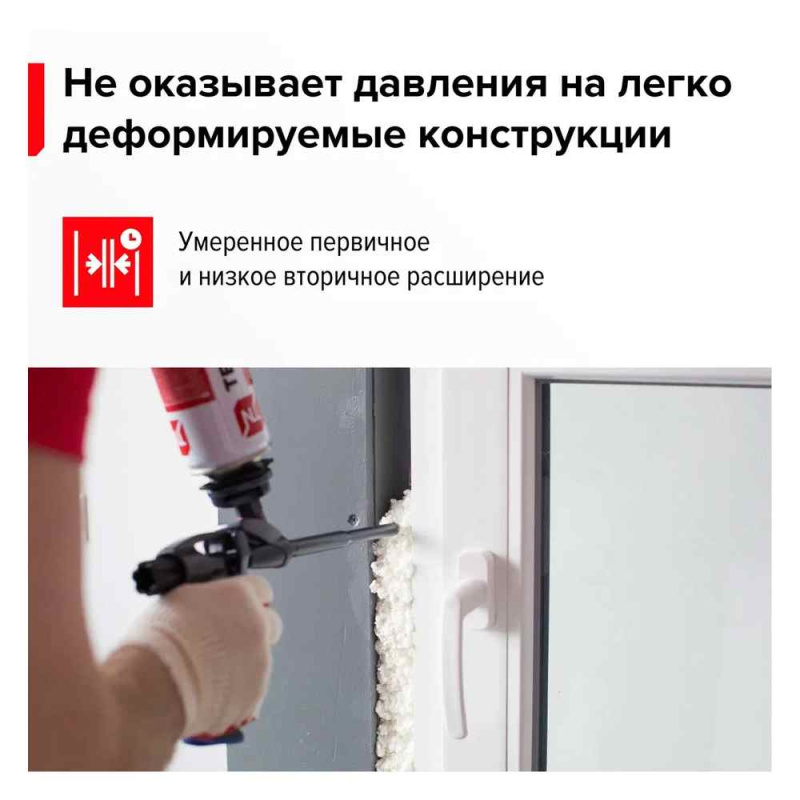 Подходит для установки межкомнатных дверей, откосов и подоконников. Обеспечивает тепло- и звукоизоляцию монтажных швов.