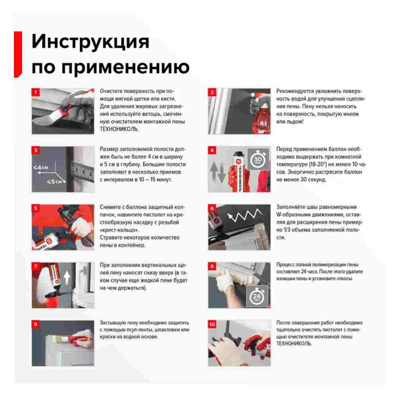 Отличается контролируемым объемом монтажного валика и равномерной мелкопористой структурой, которая обеспечивает высокую тепло- и