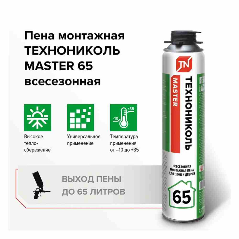 Монтажная пена ТЕХНОНИКОЛЬ MASTER 65 всесезонная отличается максимальной производительностью с выходом до 65 л пены с одного