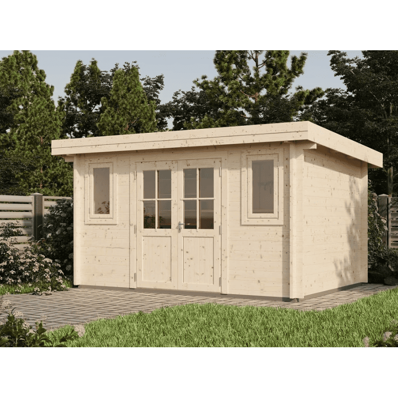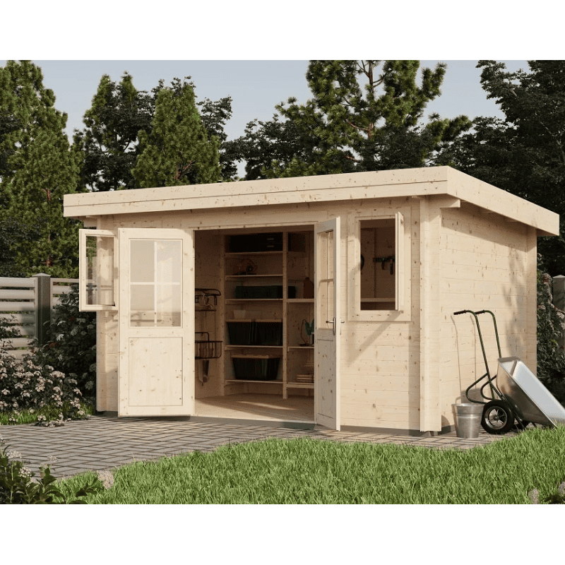 Описание: Функциональное хозяйственное строение из профилированного бруса камерной сушки с односкатной крышей. Просторное помещение площадью 10.1 м² подходит для организации мастерской или хранения садового инвентаря и техники.