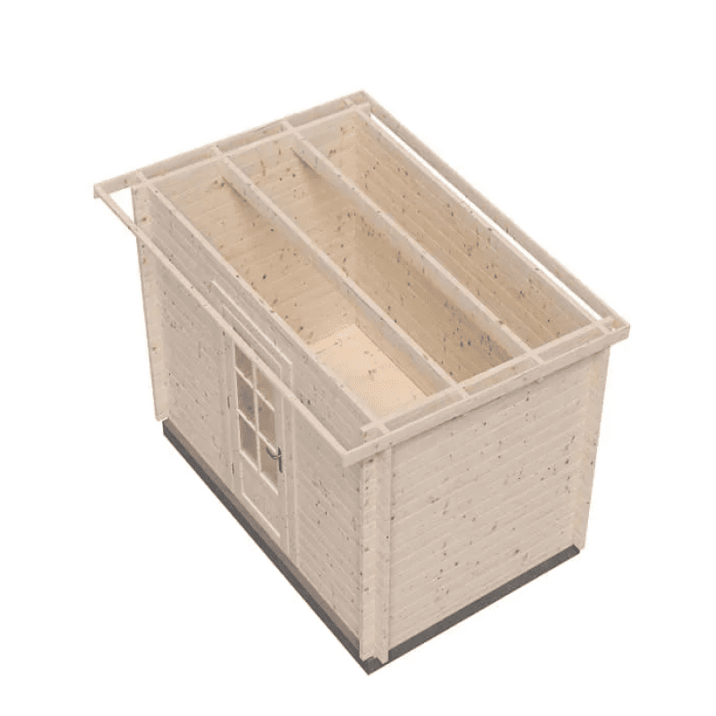Комплектация: стеновой брус, доски крыши и пола, дверь, крепеж